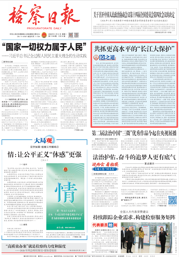 推动长江经济带高质量发展,离不开法治固根本、稳预期、利长远的保障作用。检察机关作为法律监督机关和保障国家法律统一正确实施的司法机关,履职其中责无旁贷。十年来,检察机关始终深入学习贯彻习近平总书记重要讲话精神,立足检察职能,深化落实各项服务保障举措,努力为长江经济带高质量发展提供更优法治保障。当前,长江流域生态环境保护和高质量发展正处于由量变到质变的关键时期,“十五五”规划建议提出“持续推进长江经济带发展”。各级检察机关要深入贯彻习近平生态文明思想、习近平法治思想,毫不动摇坚持“共抓大保护、不搞大开发”战略决策,全面贯彻落实长江保护法,正确处理好保护与发展、惩治与修复、监督与协同这三对关系,在高水平保护上下更大功夫,在护航高质量发展上有更大作为,切实担负起服务推动长江经济带高质量发展的政治责任、法治责任、检察责任。