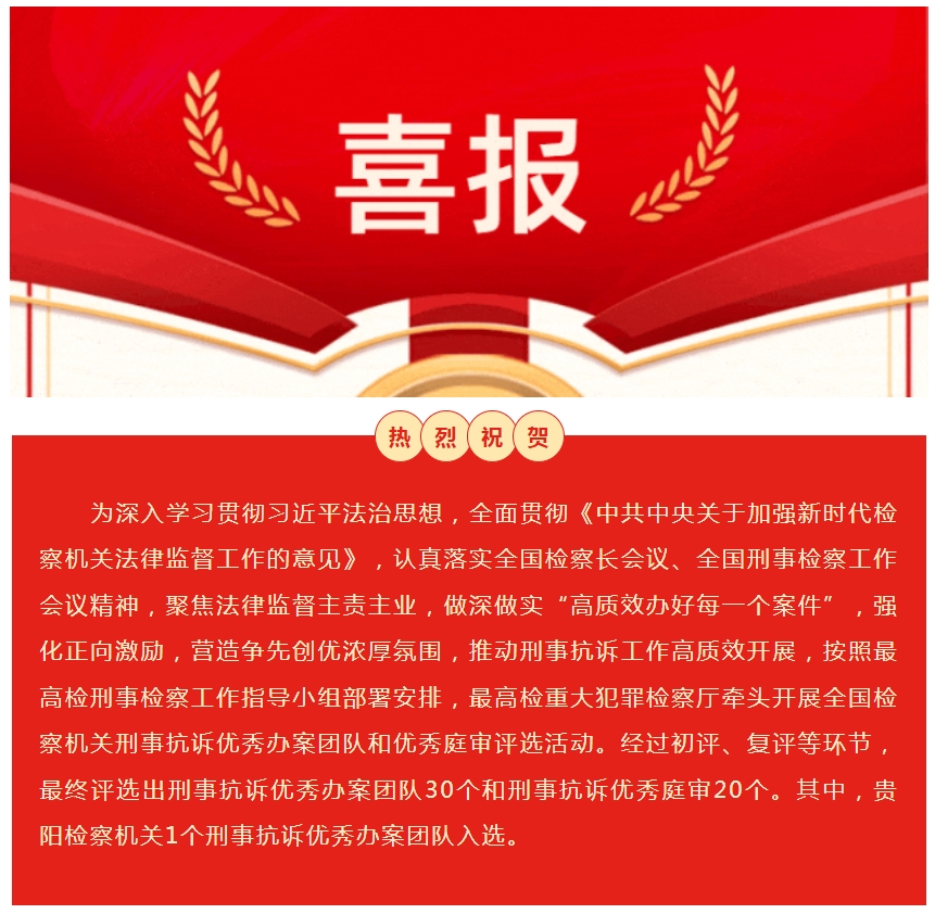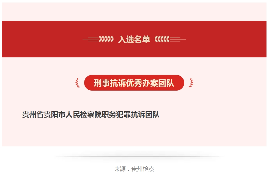 喜报丨贵阳检察1个团队入选!