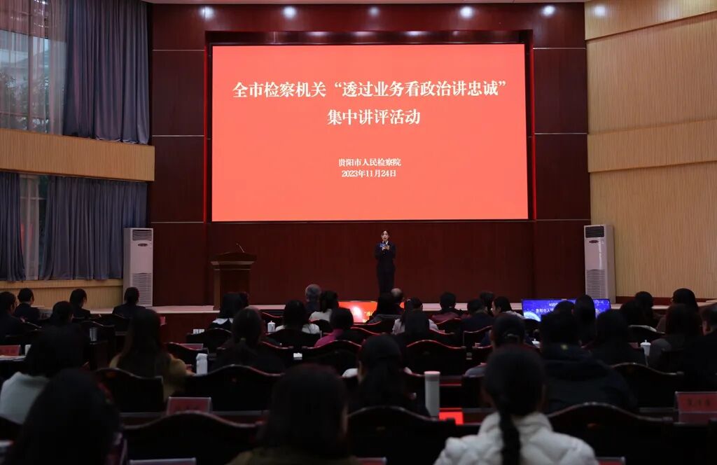 11月24日,贵阳市检察院组织开展全市检察机关“透过业务看政治讲忠诚”集中讲评。市检察院党组书记、检察长姜正权出席,党组副书记、常务副检察长丁泽军作点评。