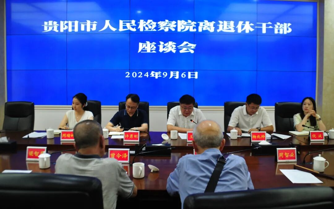 9月6日,贵阳市院召开离退休干部座谈会,市院党组书记、代理检察长王勇出席会议,通报2024年上半年全市检察工作情况并作讲话。